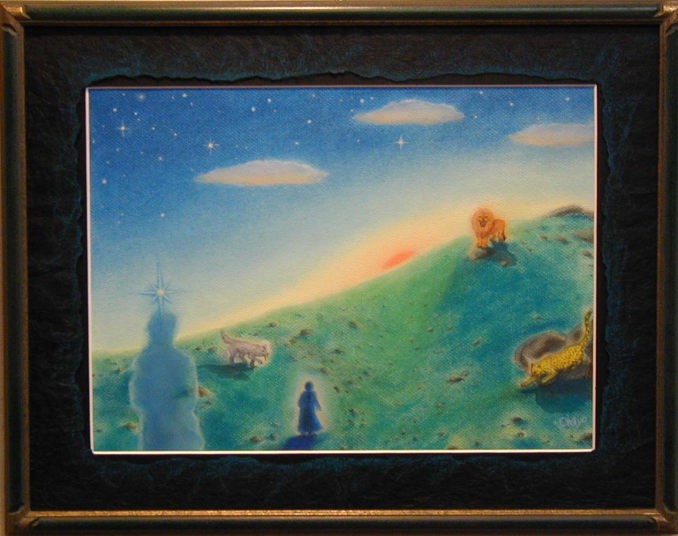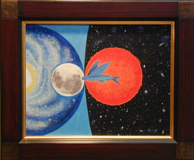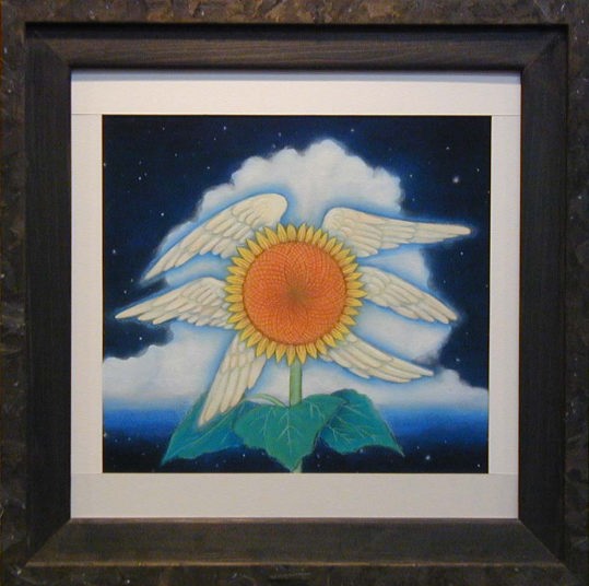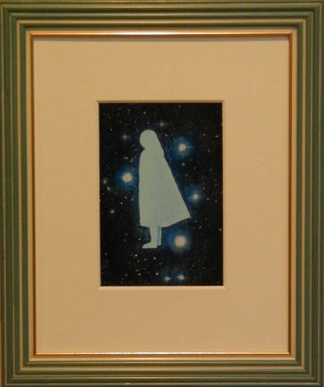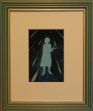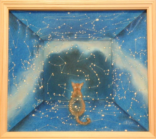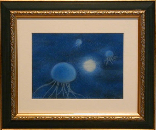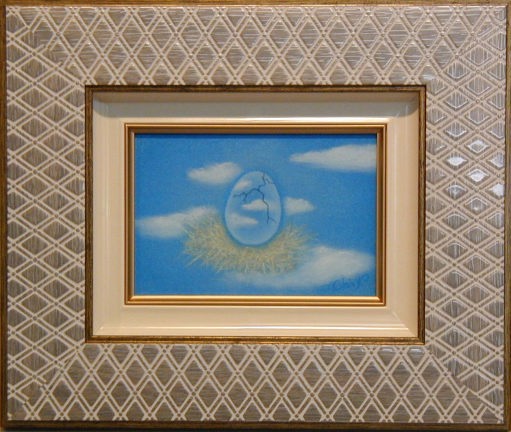 | うさぎと月のモチーフに加え、今回私の中では虹色≠ェテーマでした。 墨に引き続き、胡粉を少し併用してみました。 奥行きのある額だったので、どうしても影が入ってしまい、額なしの写真。 少々雰囲気が違って見えます。 3つともグループ展始まってすぐにポストカードにしました。 |